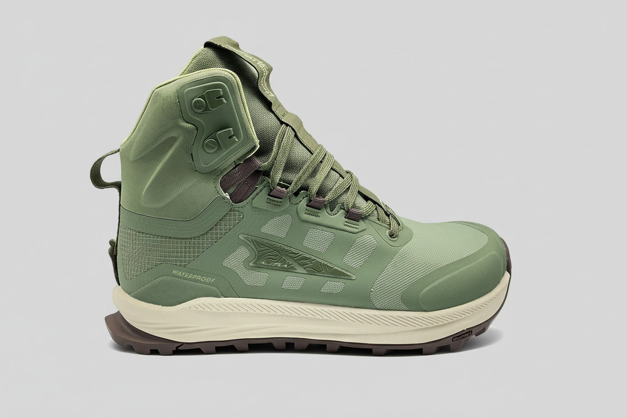 Der Lone Peak 9 Waterproof Mid wurde mit Blick aufs Wandern entwickelt — für Pfade, wechselndes Gelände und nasse Bedingungen. Der höhere Schnitt schützt deinen Knöchel bei Steigungen und holprigen Wegen, ohne sich schwer oder klobig anzufühlen.